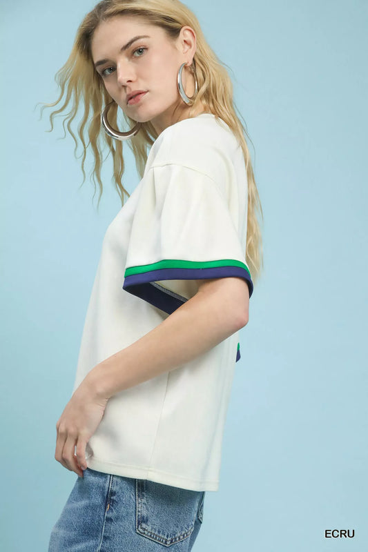 Umgee Contrast Trim Bell Sleeve Top